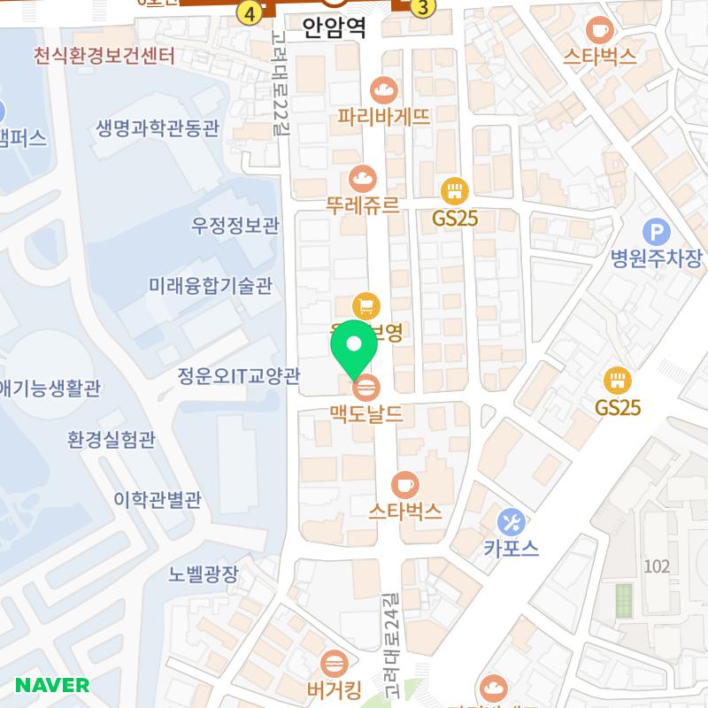 📍 주소: 서울특별시 성북구 고려대로 102 3층, 4층